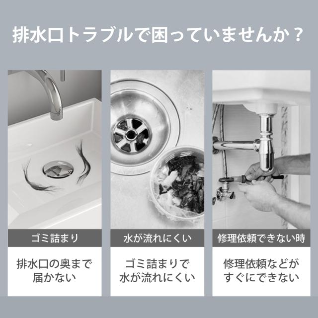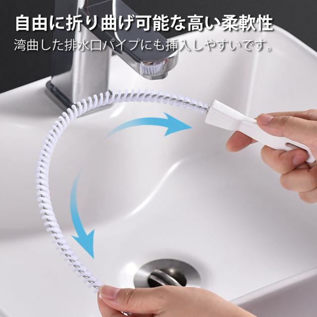 排水口ブラシ 長い パイプクリーナー パイプ詰まり 排水口 配管 洗面所 浴室 トイレ キッチン 髪の毛 drain-brush