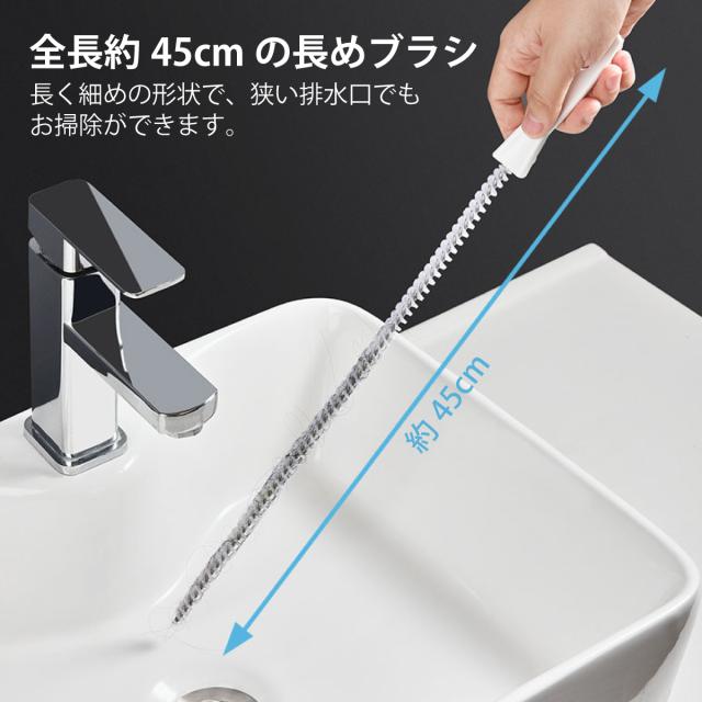 【全長約45cmの長めブラシ】長く細めの形状で、狭い排水口でもお掃除ができます。