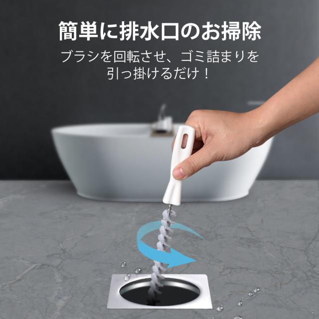 【簡単に排水口のお掃除】ブラシを回転させ、ゴミ詰まりを引っ掛けるだけ。