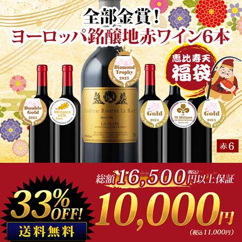 SALE「福袋」恵比寿天 全部金賞!ヨーロッパ銘醸地赤ワイン6本セット 送料無料 赤ワインセット【s2601】