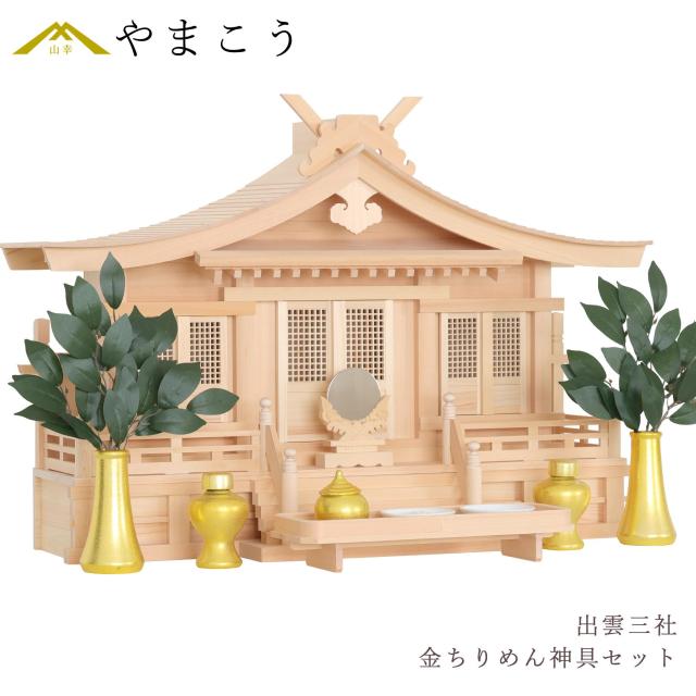神棚セット 出雲 木曽桧の逸品 三社 大社造り 格子扉 金ちりめん 神具セット 最高級