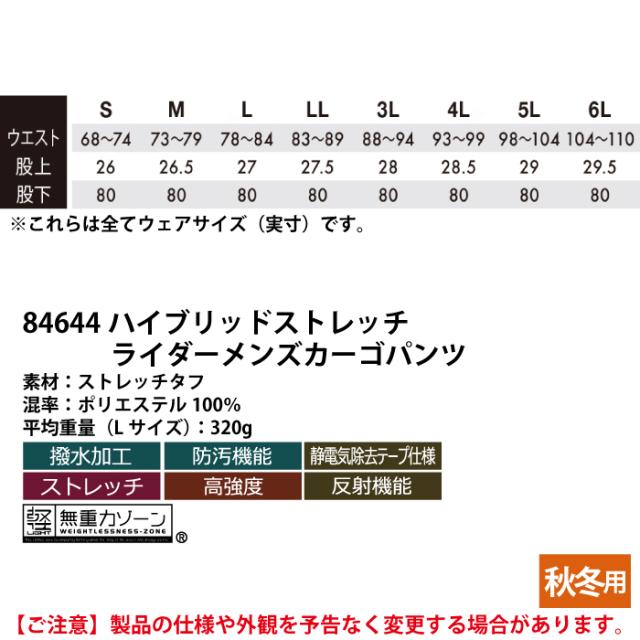 84644 ハイブリッドストレッチライダーメンズカーゴパンツ