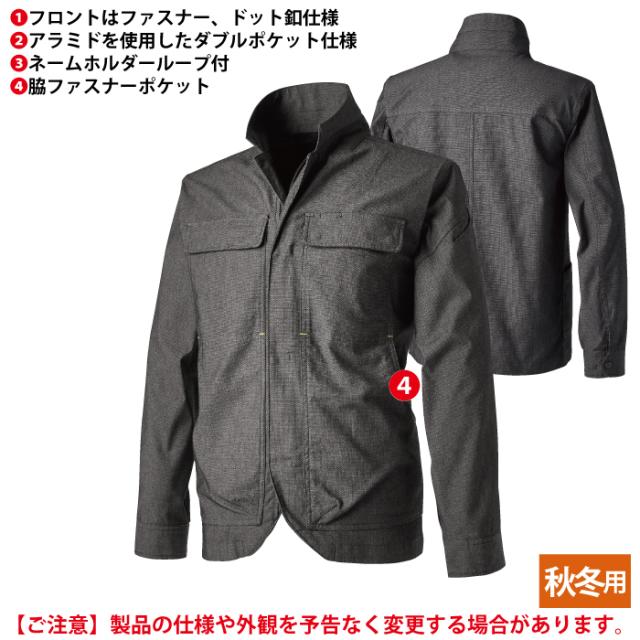 ◇機能:軽量、ストレッチ、形態安定性、2層構造糸、安心の日本製素材使用、マルチスリーブポケット、フロントはファスナー、ドット釦仕様、アラミドを使用したダブルポケット仕様、ネームホルダーループ付、脇ファスナーポケット