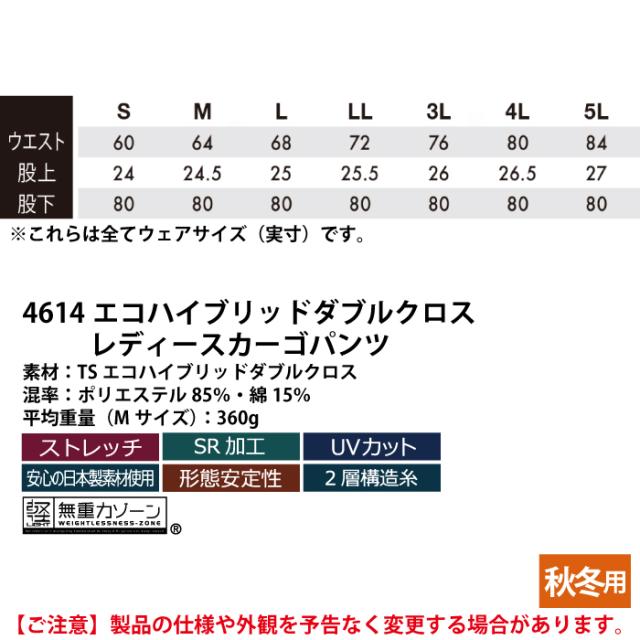 藤和 TSDESIGN 作業服 秋冬用 46141 エコハイブリッドダブルクロスレディースカーゴパンツ S-LL
