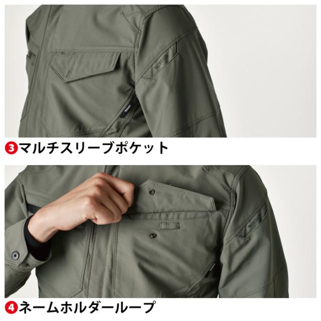 ◇機能:軽量、ストレッチ、形態安定性、2層構造糸、安心の日本製素材仕様、SR加工、UVカット、グルーブネック、肘部分立体仕様、マルチスリーブポケット、ネームホルダーループ、クイックアクセスポケット