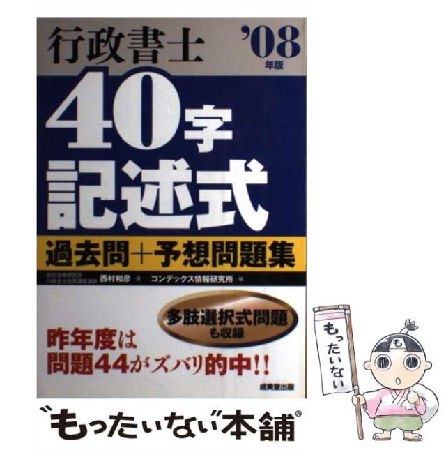 商品名:【中古】 行政書士40字記述式過去問+予想問題集 2008年版 / 西村和彦、コンデックス情報研究所 / 成美堂出版 [単行本]【メール便送料無料】
