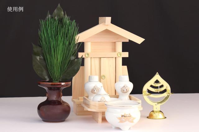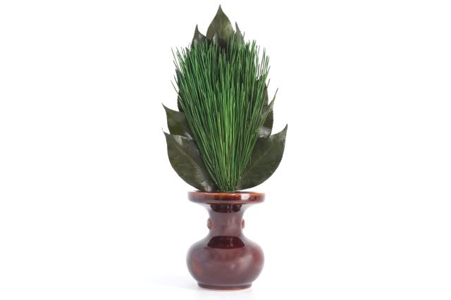 荒神松と専用の松立て付きセットです。荒神松は厳選したみやこ松と丹波産椿(つばき)の葉を使用し、製作したプリザーブド加工の三宝松一束となります。神前に常緑の美しいお供えを飾ります。 高い所に供えた荒神松の水やり・交換は危険を伴うものですが、プリザーブド加工の荒神松は枯れることがないので、交換の必要がなく、水やりも不要。 |