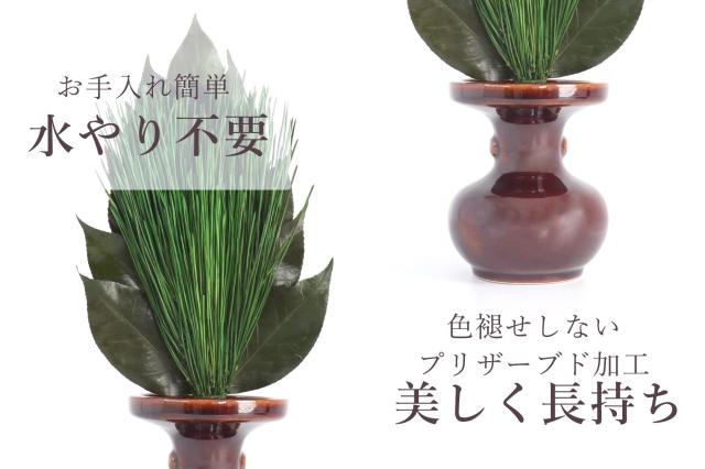 プリザーブド加工の荒神松は枯れることがないので、交換の必要がなく、水やりも不要。