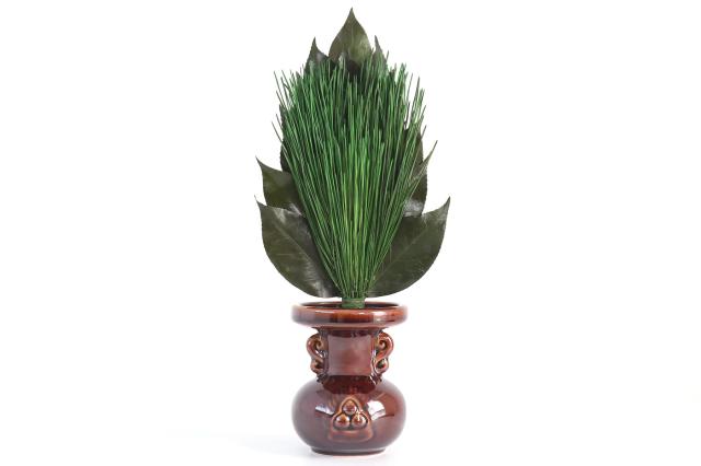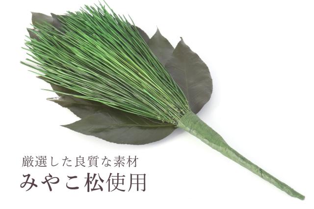 荒神松は厳選したみやこ松と丹波産椿(つばき)の葉を使用し、製作したプリザーブド加工の三宝松一束となります。