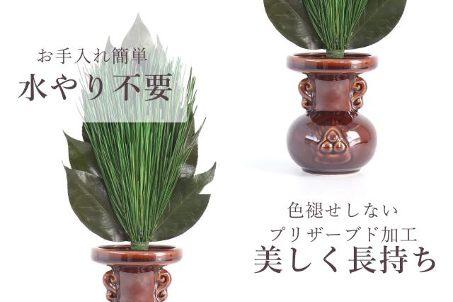 プリザーブド加工の荒神松は枯れることがないので、交換の必要がなく、水やりも不要。
