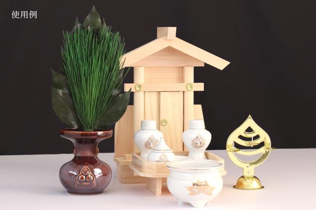 荒神松と専用の荒神紋入り松立てのセットです。荒神松は厳選したみやこ松と丹波産椿(つばき)の葉を使用し、製作したプリザーブド加工の三宝松一束となります。神前に常緑の美しいお供えを飾ります。 高い所に供えた荒神松の水やり・交換は危険を伴うものですが、プリザーブド加工の荒神松は枯れることがないので、交換の必要がなく、水やりも不要。 |
