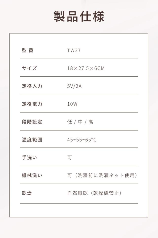 温度調整:3段階(45℃/55℃/65℃)