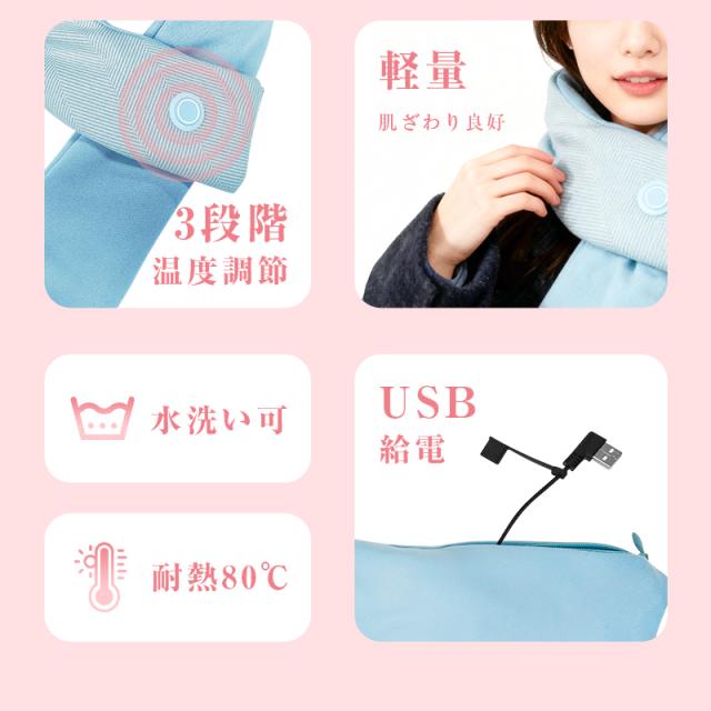 電熱マフラー ネックウォーマー 3段階温度調節 丸洗い可能 USB給電式 安全 低温やけど防止 柔らかい 軽量 冷え対策 温熱 防寒グッズ 男女兼用 モバイルバッテリー対応 肌に優しい生地 良い着け心地 クリスマスプレゼント 90日安心保証付き 【PL保険加入済み製品・安心】