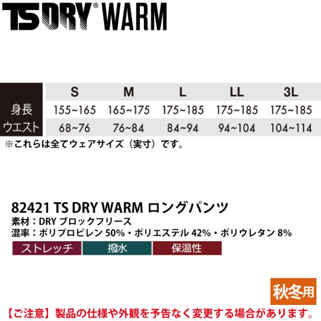 藤和 TSDESIGN 作業服 82421 TS DRY WARMロングパンツ S-LL インナー 秋冬用