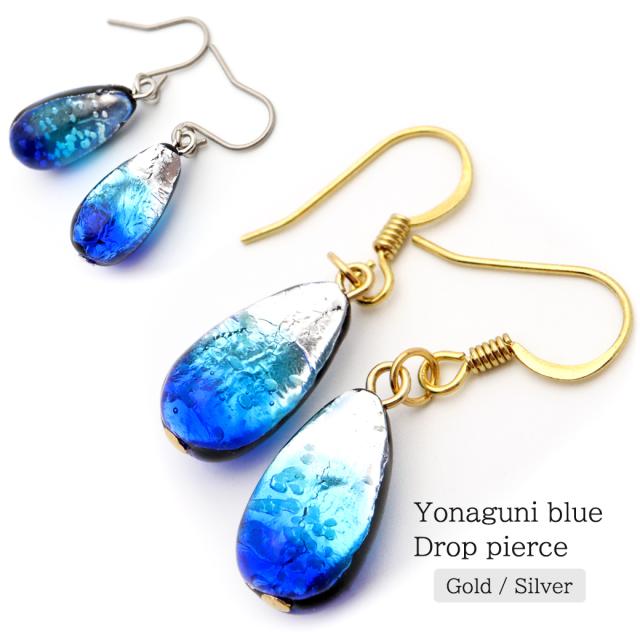 ヨナグニブルー ホタルガラス ピアス しずく型 ドロップ チタン製 両耳用 とんぼ玉 沖縄 お土産