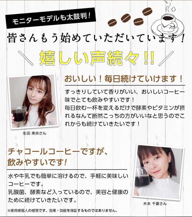 - 届くのも早く、安くて味も香りも良く普通のコーヒーみたいで全然気にならず飲める!後は痩せる事を期待してます!