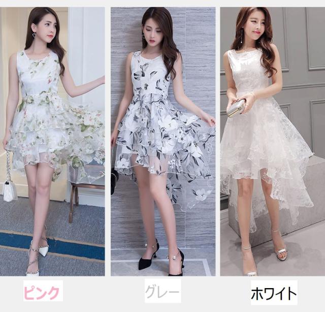 総 レース ワンピース ノースリーブ パーティー ドレス 丸首 フレア 膝丈 フィッシュテール 結婚式 二次会 レディース テールカット スワン フローラル オーガンジー 大きいサイズ フェミニン かわいい