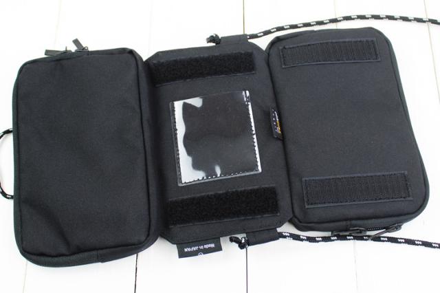 メイン収納部分は2箇所に分かれていて、両面をマジックテープで貼り合わせる仕様です。