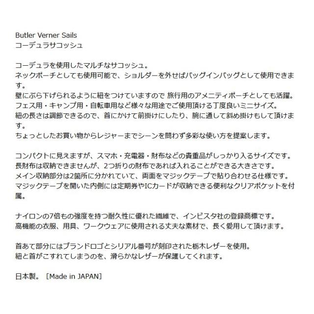 Butler Verner Sails コーデュラナイロン ショルダーバッグ サコッシュ バトラーバーナーセイルズ 日本製 軽量 ミニショルダーポーチ バッグインバッグ ja-1981