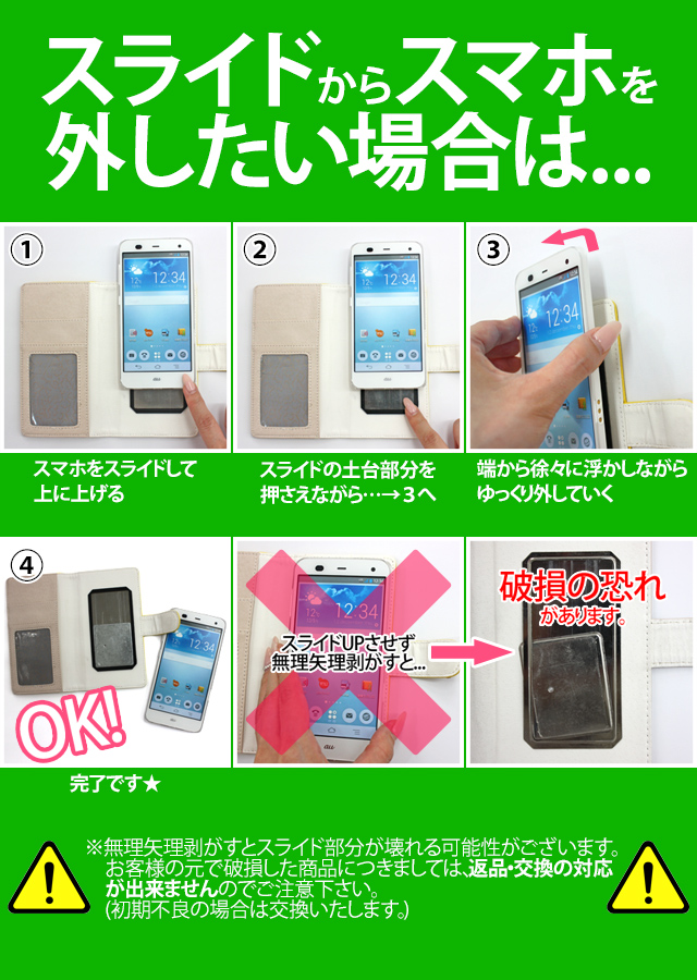 ●カメラがスマートフォン上部から4cm以上下にある場合はスライドUP方式非対応となります。