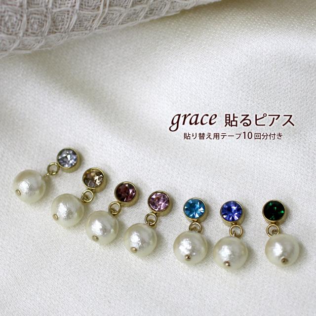 grace貼るピアス コットンパール ゴールド 選べるストーンカラー 貼り替えテープ付き ノンホールピアス シールピアス パール 貼るだけ レディース イヤリング シールピアス 痛くない おしゃれ お呼ばれ