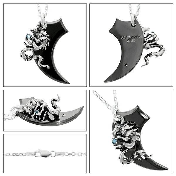 シルバーアクセサリー メンズアクセ スターリングシルバー シルバーネックレス シルバーペンダント メンズネックレス メンズペンダント ウルフマンB.R.S 狼 オオカミ 生き物 動物 爪 クロウ クロー ハード 青 ブルー 黒 ブラック プレート チタン ステンレスネックレス ステンレスペンダント ブルートパーズ 天然石 大ぶり 大きめ