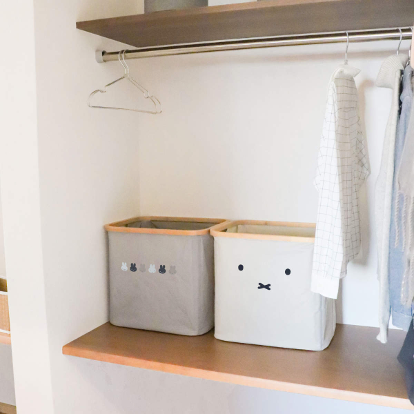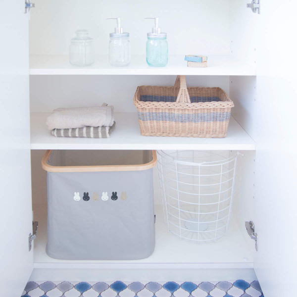 竹のフレームがナチュラルな雰囲気を醸し出すモノトーンミッフィーシリーズのバンブーバスケットです。衣類やタオル、おもちゃ、日用品など用途に合わせて様々な物の整理収納に役立ちます。外側から中身が透けないので、ごちゃごちゃした小物も生活感なく収納ができます。