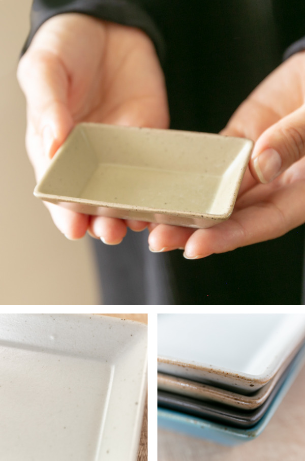 薬味やしょうゆ入れにぴったりな大きさのプレートです。お漬物や箸休めのちょっとしたおかず入れとしてもお使いいただけます。大きめのプレートに重ねて使う楽しみ方もできます。いつもの食卓に変化を出したいときや、来客用にお洒落なひと皿をさっと出したいときに活躍してくれるうつわです。