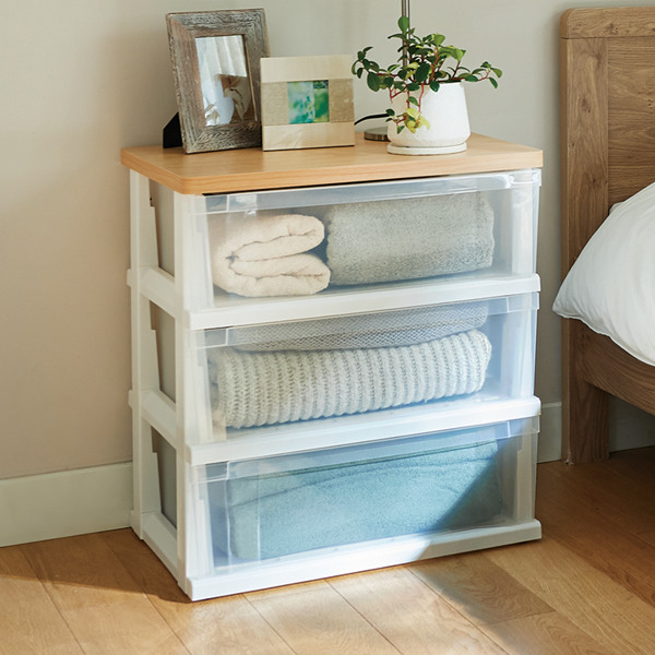 チェスト 木製天板ストッカー 550 組立式 3段 ( 幅55×奥行40×高さ60cm プラスチック 収納 引き出し タンス 日本製 収納ケース クローゼット 奥行40cm 衣類収納 たんす 収納チェスト 収納ボックス 衣装ケース クリア )