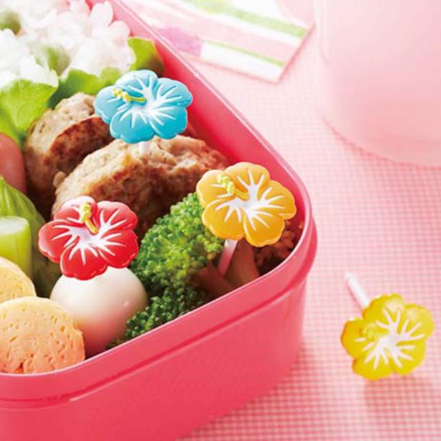 ピック 4本入り ハイビスカスピック ( お弁当ピック おかずピック 子供 弁当 飾り お弁当用 子供用 幼稚園 保育園 キッズ )