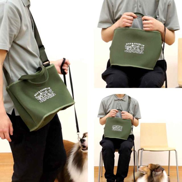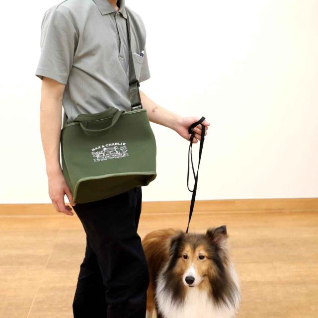 お散歩に必要なペットボトルやおやつ、財布、携帯などを全部まとめて持ち運ぶのにちょうど良いサイズです。トートバッグとしてはもちろん、ショルダーベルトを使って肩掛けにして持つことも出来ます。