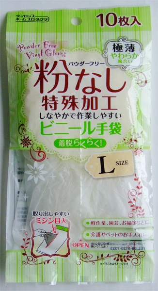 ビニール手袋 パウダーフリー 極薄 左右両用 Lサイズ 10枚入 (100円ショップ 100円均一 100均一 100均)