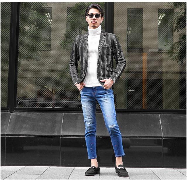 テーラードジャケット メンズ テーラード ストライプ ジャケット 秋冬 オシャレ ショート丈 黒 白 キレイめ ストレッチ 派手 お兄系 オラオラ系 ちょいワル 春服 春 春新作 新作