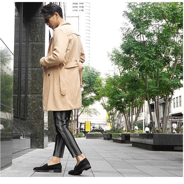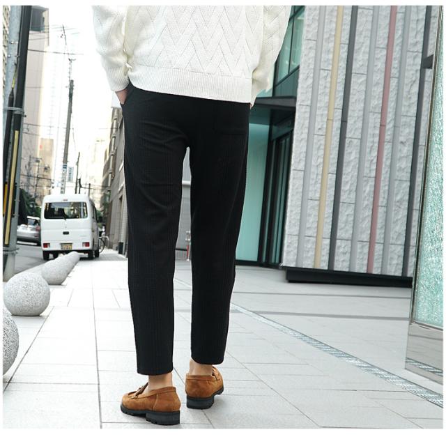 『ストライプアンクルパンツ』大人の男を演出するアンクルパンツが登場。【いつだってカッコ良く...】大人の男なら、常にカッコ良い憧れられる存在で在りたい。大人の男のカッコ良さを際立ててくれるアンクルパンツは、いついかなる場面でも足元からあなたの男としての格を引き上げてくれる。また、ストライプ柄を採用した生地は、縦のラインを強調してくれ、着やせなどスタイリッシュに見せてくれる。足首がチラっと見えるアンクル丈は、足元に清潔感と軽さを与えてくれてカッコ良さに磨きをかける。大人の男なら、常にカッコ良い憧れられる存在で在りたい。