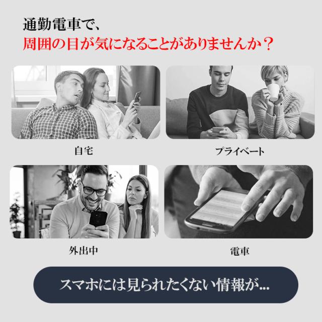 ★覗き見防止屋外、電車やバスなど人が大勢いる中でも覗き見防止加工により、他人に表示中の畫面を見られる心配がありません。暗証番号の入力する際、他人に見られたくないメッセージ入力際、プライバシーを守ってくれます。