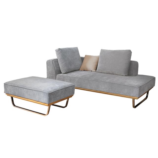 MJD-CCST カウチソファとスツールのセット 大小クッション2個付 ブルーグレー色/ライトブルー色 スエード調布張り スチール脚 北欧 完成品 ベンチタイプ