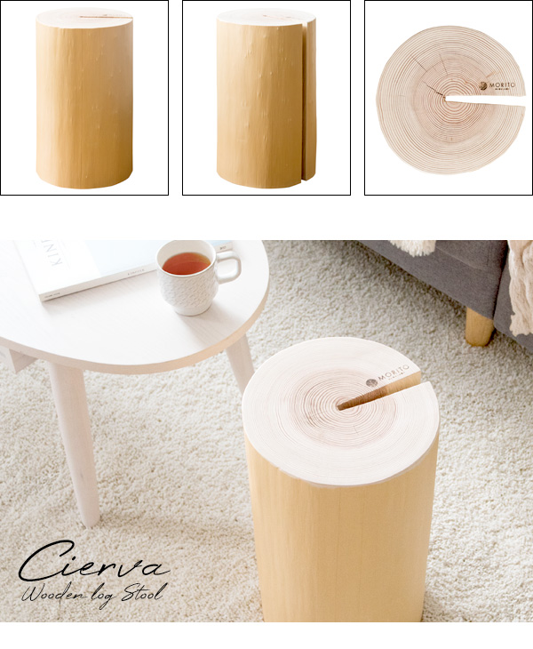 【国産吉野杉使用/背割り加工】丸太スツール Cierva(シエルバ) CH-3042 MORITO サイドテーブル ダイニングスツール ダイニングチェア ベンチ 椅子 腰掛け 足置き オットマン 寝室 リビング 玄関 おしゃれ