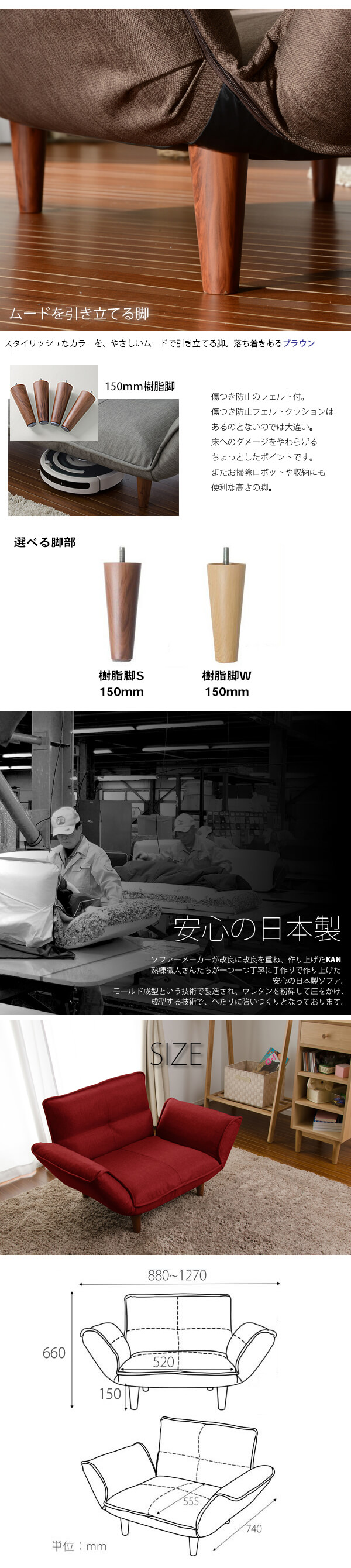 安心の日本製で、自分の好きなスタイルで、ゆったりとくつろぐことが出来るリクライニングソファーです。