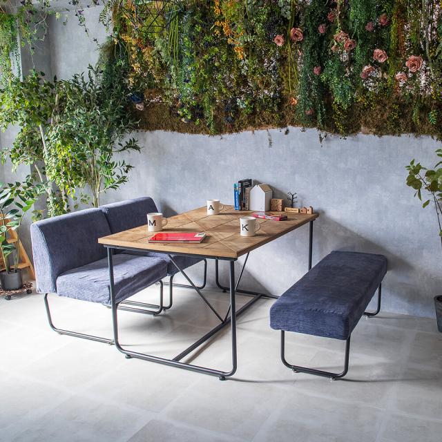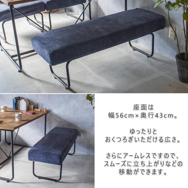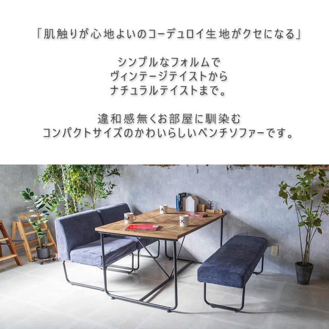 こちらの商品は、ベンチソファーのみとなります。アイアンフレームとコーデュロイ生地がレトロな雰囲気を醸し出し、あたたかみのあるくつろぎ空間を演出してくれます。