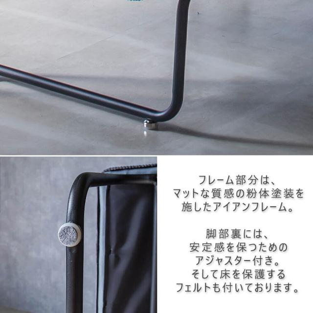 強度に優れたアイアン脚部は、細身のデザインを採用し、開放的でラフな雰囲気を演出。