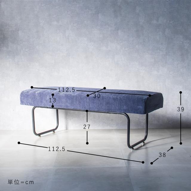 本体サイズ:幅 112.5cm × 奥行き 38cm × 高さ 39cm座面幅: 幅 112.5cm × 奥行 30cm