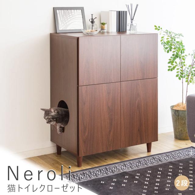 Neroli(ネロリ) 猫トイレクローゼット 2段 キャット おしゃれ キャットトイレクローゼット 猫トイレ収納 隠す 収納ラック 送料無料 ラック 棚 収納棚 猫砂飛散防止 ブラウン 収納ラック 収納棚 木製ラック リビング収納 ペット用品 猫グッズ