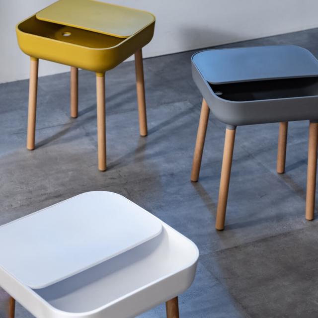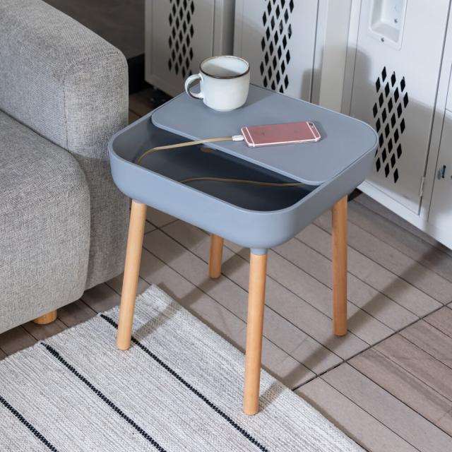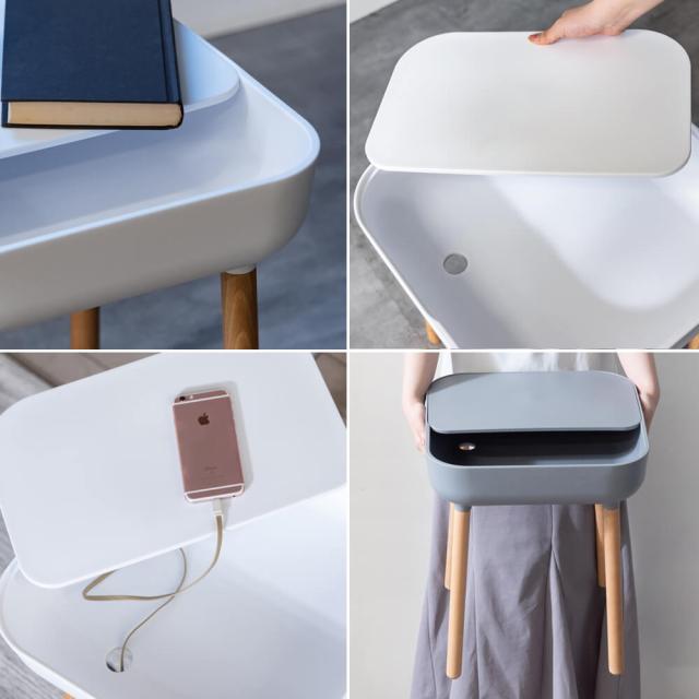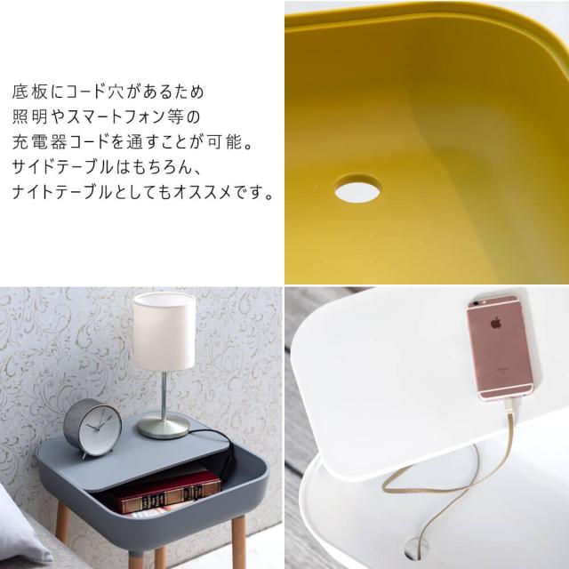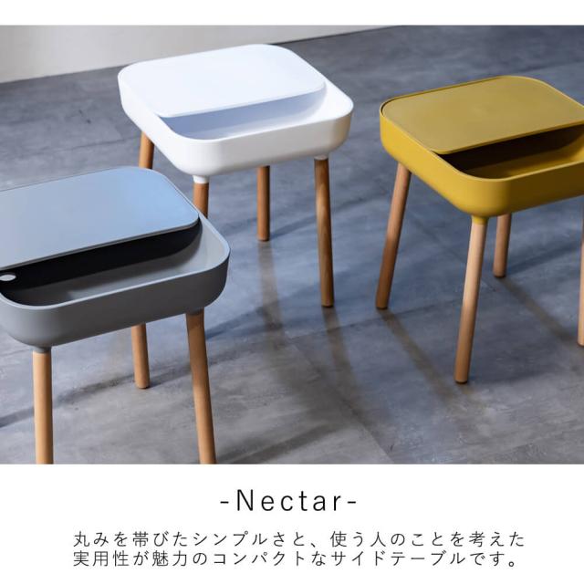 Nectar(ネクター) サイドテーブル テーブル サイドテーブル ソファテーブル ナイトテーブル 省スペース 収納付き 軽量 コンパクト 北欧 おしゃれ シンプル モダン 木脚 樹脂製 コード穴付き グレー ホワイト イエロー マット ナチュラル シン