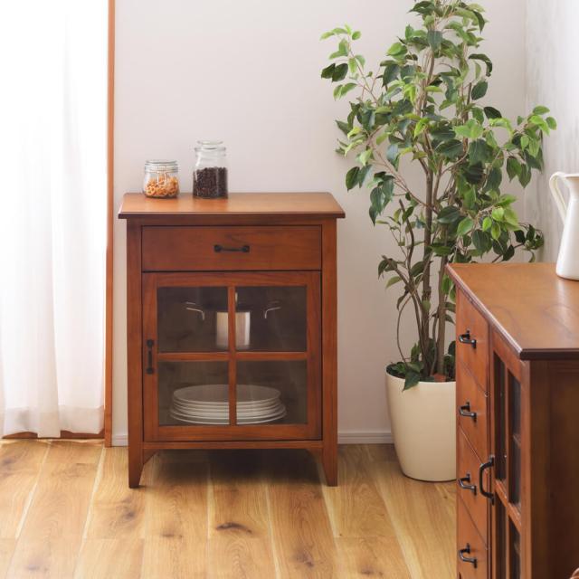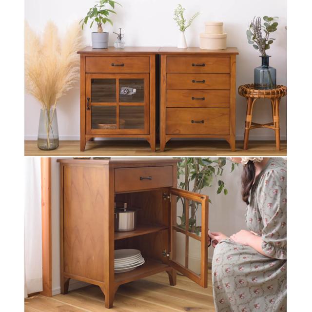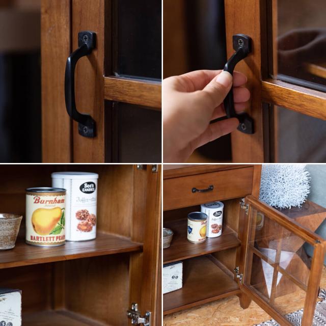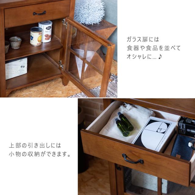引き出しには小物、ガラス扉には食器や食品等、使いやすさもバッチリです。