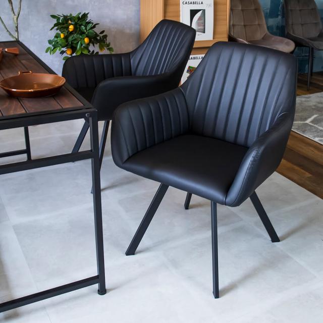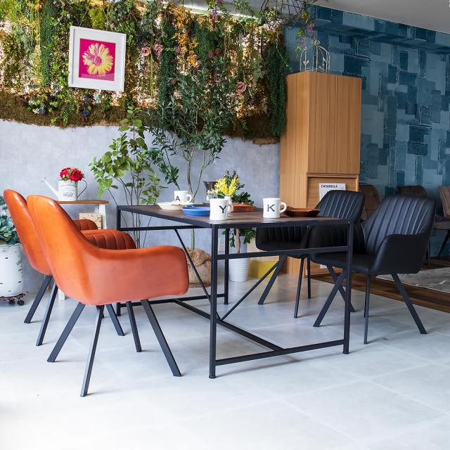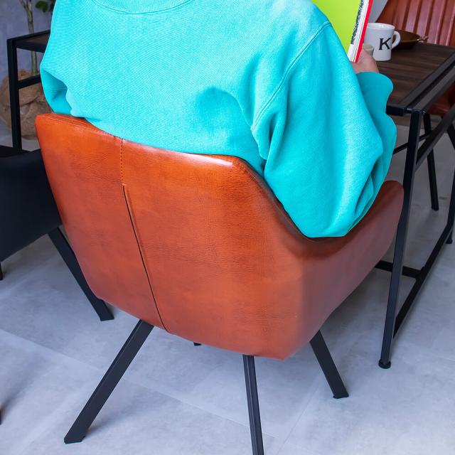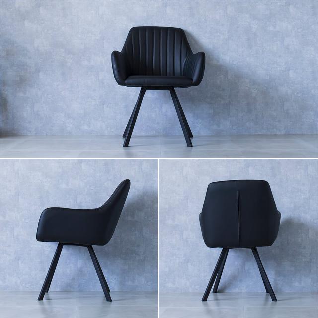 粉体塗装を施し、マットな質感でシャープなフォルムのブラックスチールの脚部と味のあるフェイクレザーがモダンな「映え」を醸し出すモダンクラブチェアーComb(カム) 。