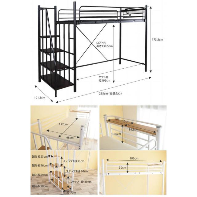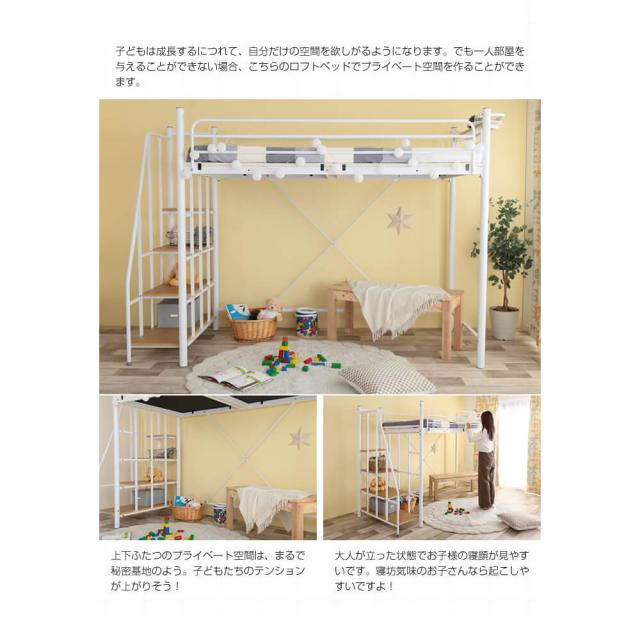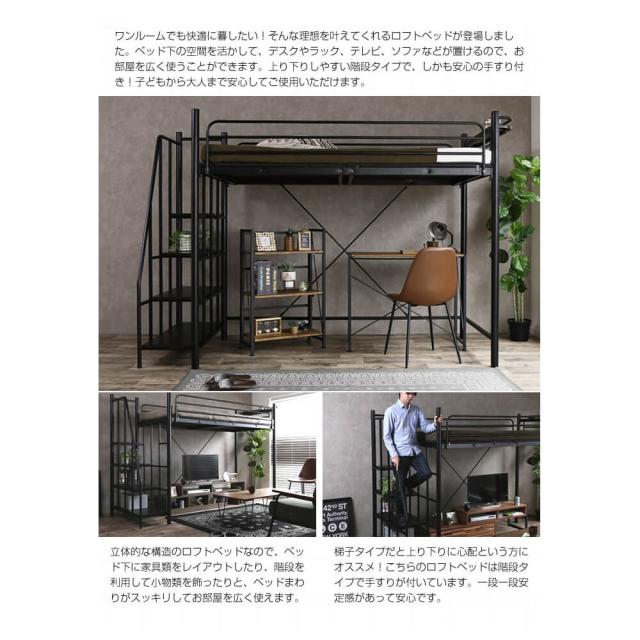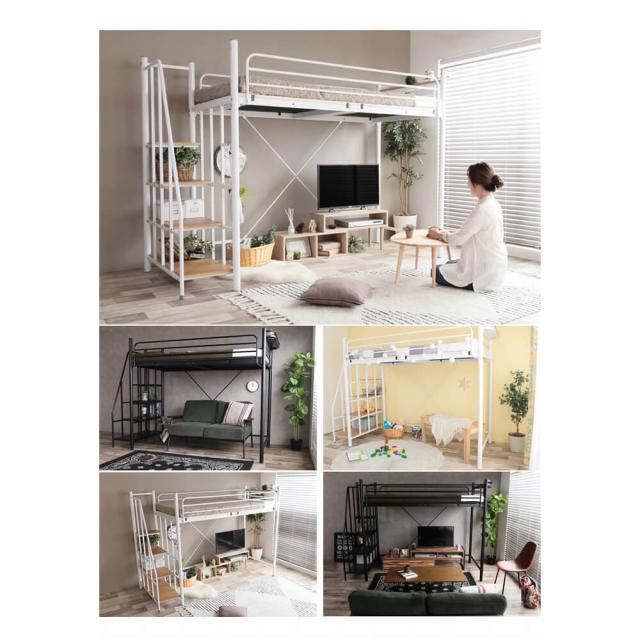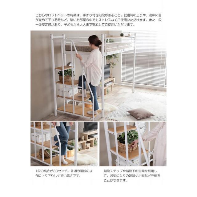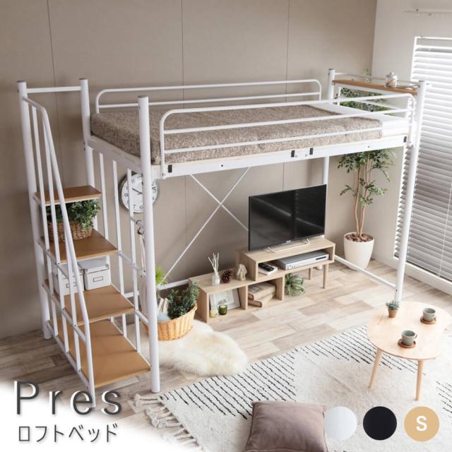 Pres(プレス) 階段付きロフトベッド ベッド シングル フレームのみ ロフト ロフトベッド 大容量 ヘッドボード 送料無料 おしゃれ ECORO Lofty ホワイト ブラック ナチュラル シンプル 北欧 レトロ 西海岸 ミッドセンチュリー