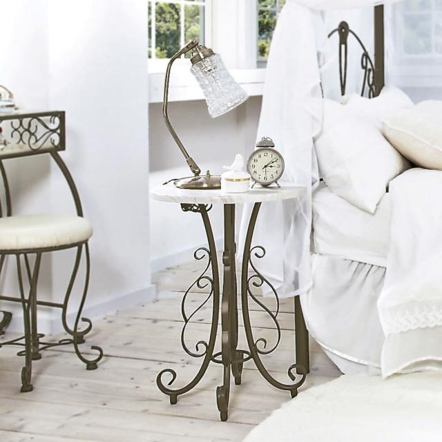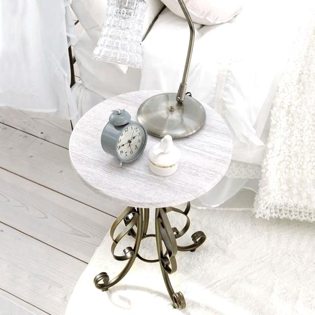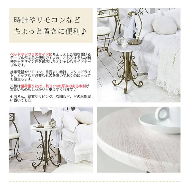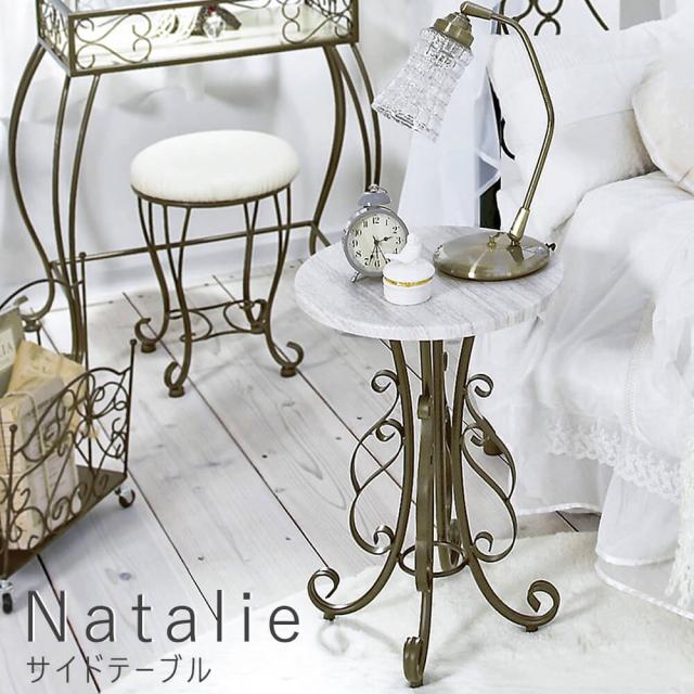 Natalie(ナタリー) サイドテーブル サイドテーブル 高さ56cm カフェテーブル リビングテーブル ラウンドテーブル ベッドサイドテーブル 丸型 円形 机 アイアン ソファサイド アンティーク 姫系 お姫様 プリンセス ゴールド ナチュラル シン