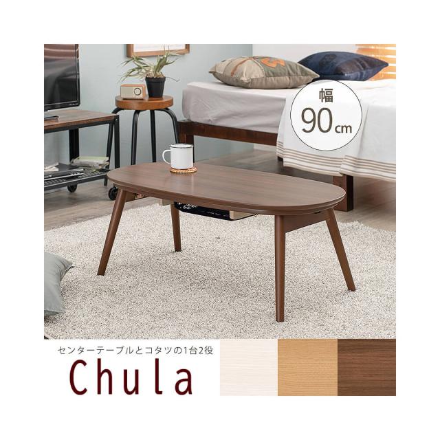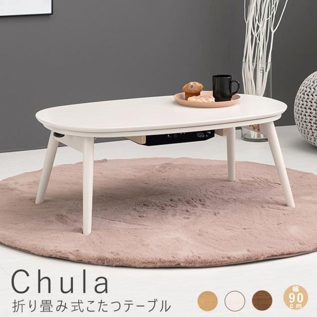 Chula(チュラ)折り畳み式こたつテーブル こたつテーブル 楕円形 オーバル コンパクト 一人暮らし テーブル 家具調こたつ 小さい かわいい おしゃれ こたつ本体 リビングこたつ 折れ脚 折りたたみ コタツ 炬燵 ナチュラル センターテーブル ナチュ