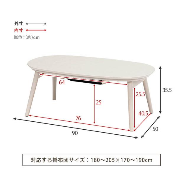 こたつテーブル 楕円形 オーバル コンパクト 一人暮らし テ