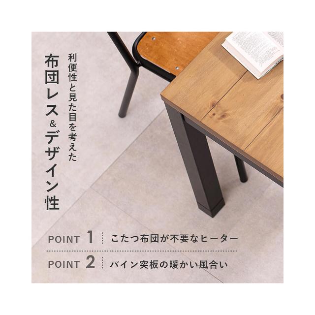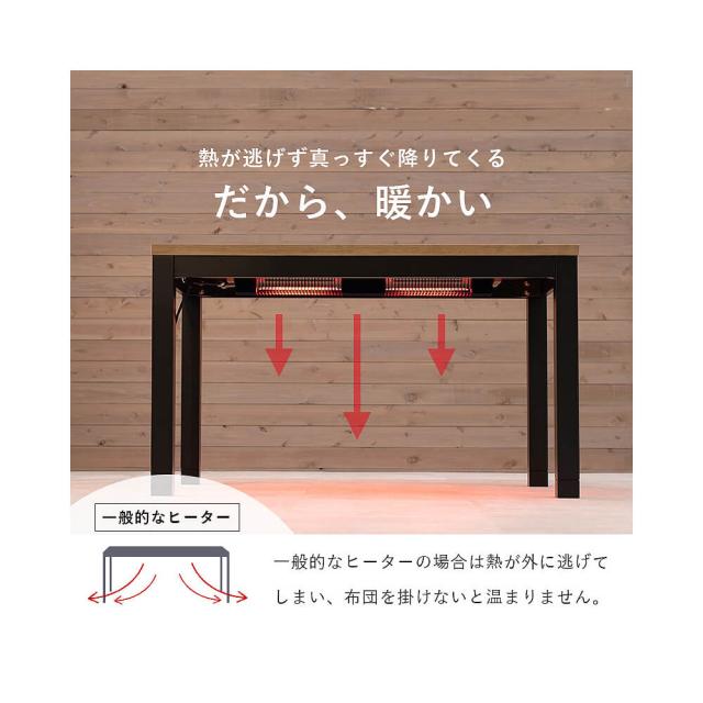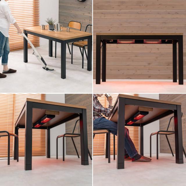 こたつ布団が不要な、熱が逃げずにまっすぐ降りてくるヒーターを使用。